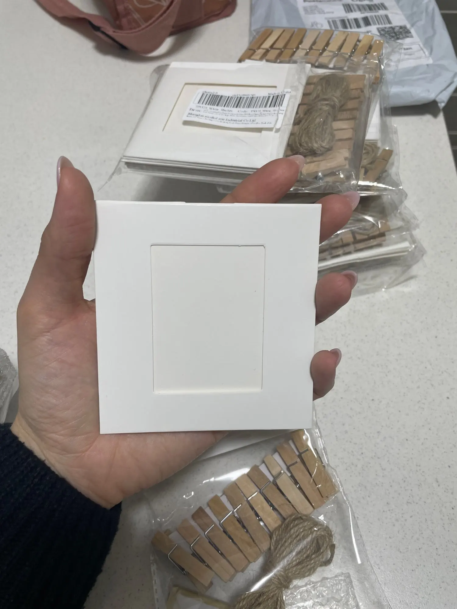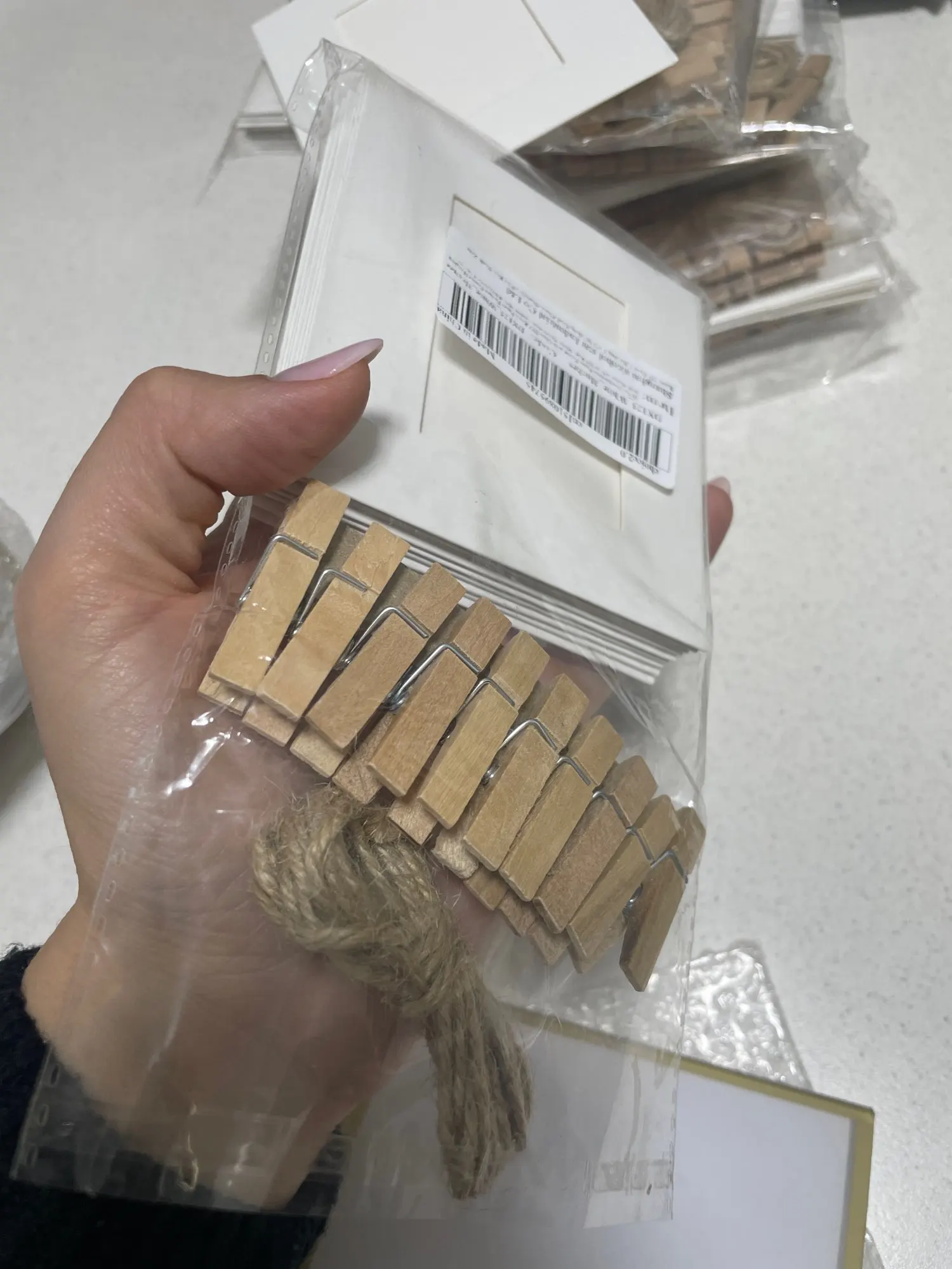 - Quantity: Ten paper photo frames, ten wooden clips, one rope